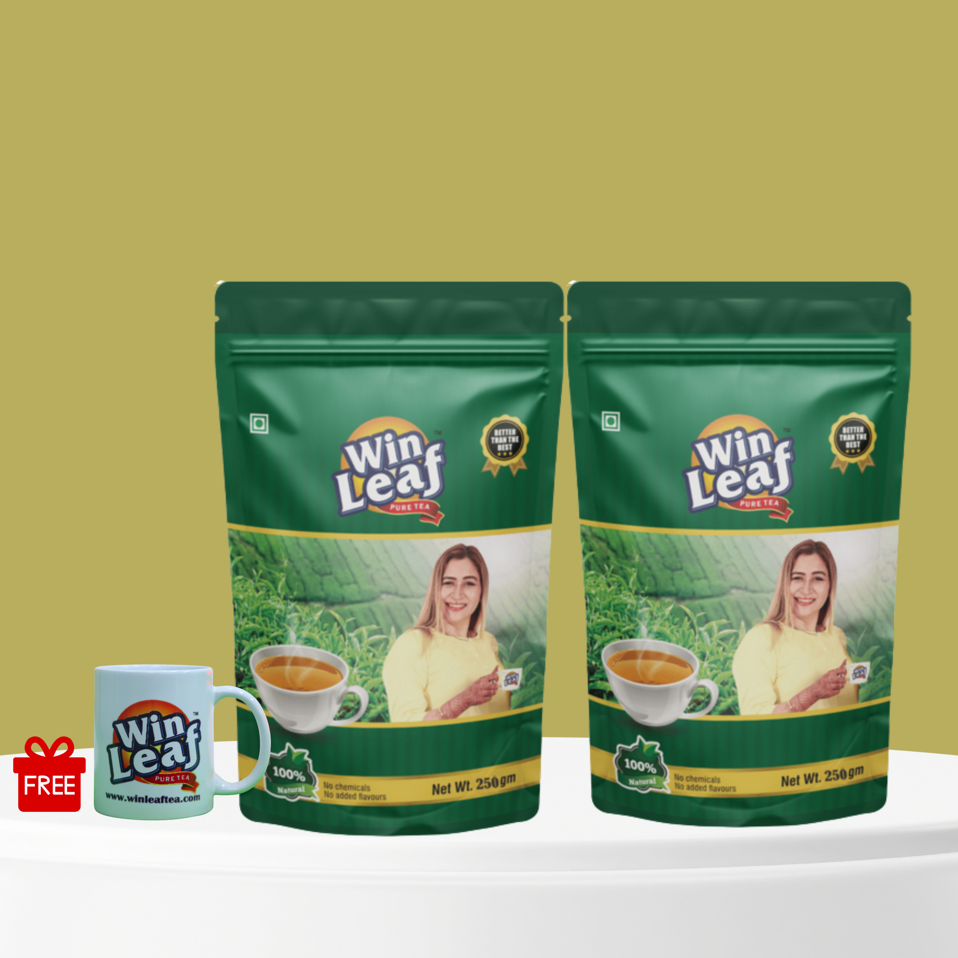 Introducing the WinLeaf Premium Family Delight – a thoughtfully curated combo that brings together richness, flavor, and warmth for everyday tea lovers. This special bundle features two full-sized 250g packs of WinLeaf Premium Tea, along with a complimentary premium tea cup, making it a perfect value combo for families, tea connoisseurs, or festive gifting. Our Premium Tea is known for its bold aroma, rich body, and strong taste that pairs beautifully with milk. Handpicked from fine estates, these tea leaves are processed to preserve maximum freshness and flavor. With each 250g pack yielding around 100–120 cups, this combo delivers nearly 240 cups of premium chai — perfect for home use or stocking up. As a special treat, we’ve included a free handcrafted tea cup with every Family Delight pack. Whether you’re starting your morning with a bold brew or unwinding in the evening, this cup adds to the elegance of your tea-drinking ritual. The cup may vary in design, making each pack slightly unique and gift-worthy. The entire combo is freshness-sealed, hygienically packed, and delivered in a sturdy, presentable box. Ideal for personal use, gifting to tea lovers, or as a welcome gesture for guests, this pack offers both utility and joy. No added preservatives, no artificial flavors – just 100% pure tea, direct from WinLeaf. Order now and enjoy the taste of tradition, elevated by a touch of elegance.