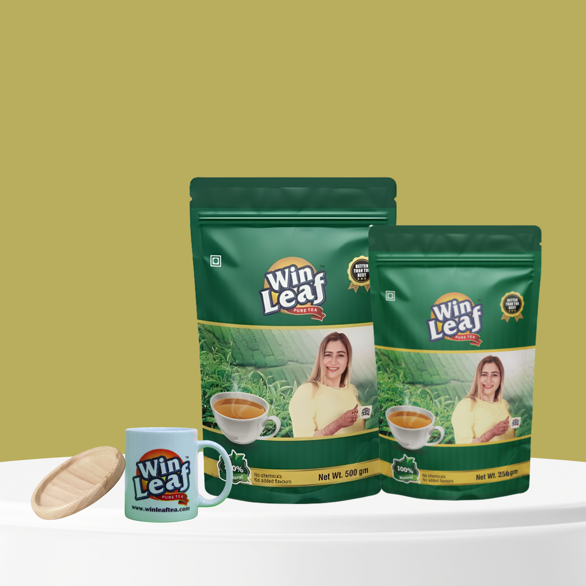 Indulge in the finest tea experience with the WinLeaf Royal Premium Pack, a luxurious bundle crafted for those who appreciate flavor, value, and thoughtful presentation. This premium combo features one 500g pack and one 250g pack of WinLeaf Premium Tea, delivering a total of 750g of our signature strong and aromatic blend, perfect for families, gifting, or personal stocking. WinLeaf Premium Tea is sourced from select plantations and processed to retain its rich aroma, deep color, and robust taste that holds up well in both black and milk tea preparations. Every sip promises quality, freshness, and a boldness that defines true chai satisfaction. To complement this generous tea offering, the Royal Premium Pack includes two exclusive free accessories — a designer tea cup worth ₹50 and a stylish coaster worth ₹40, bundled as a token of appreciation for choosing WinLeaf. Whether you're enjoying a solo cup or sharing with loved ones, this combo adds a sense of comfort and celebration to your tea-time routine. The free cup and coaster are packed securely and may vary in design, making each pack unique and ideal for festive gifting. With approximately 300 cups worth of tea and a beautifully balanced presentation, the WinLeaf Royal Premium Pack is the perfect way to experience and share the richness of tea culture. All products are sealed for freshness, made without preservatives or artificial flavors, and shipped with care. Order now to treat yourself or surprise someone with a premium tea experience that's as royal as it is rewarding.